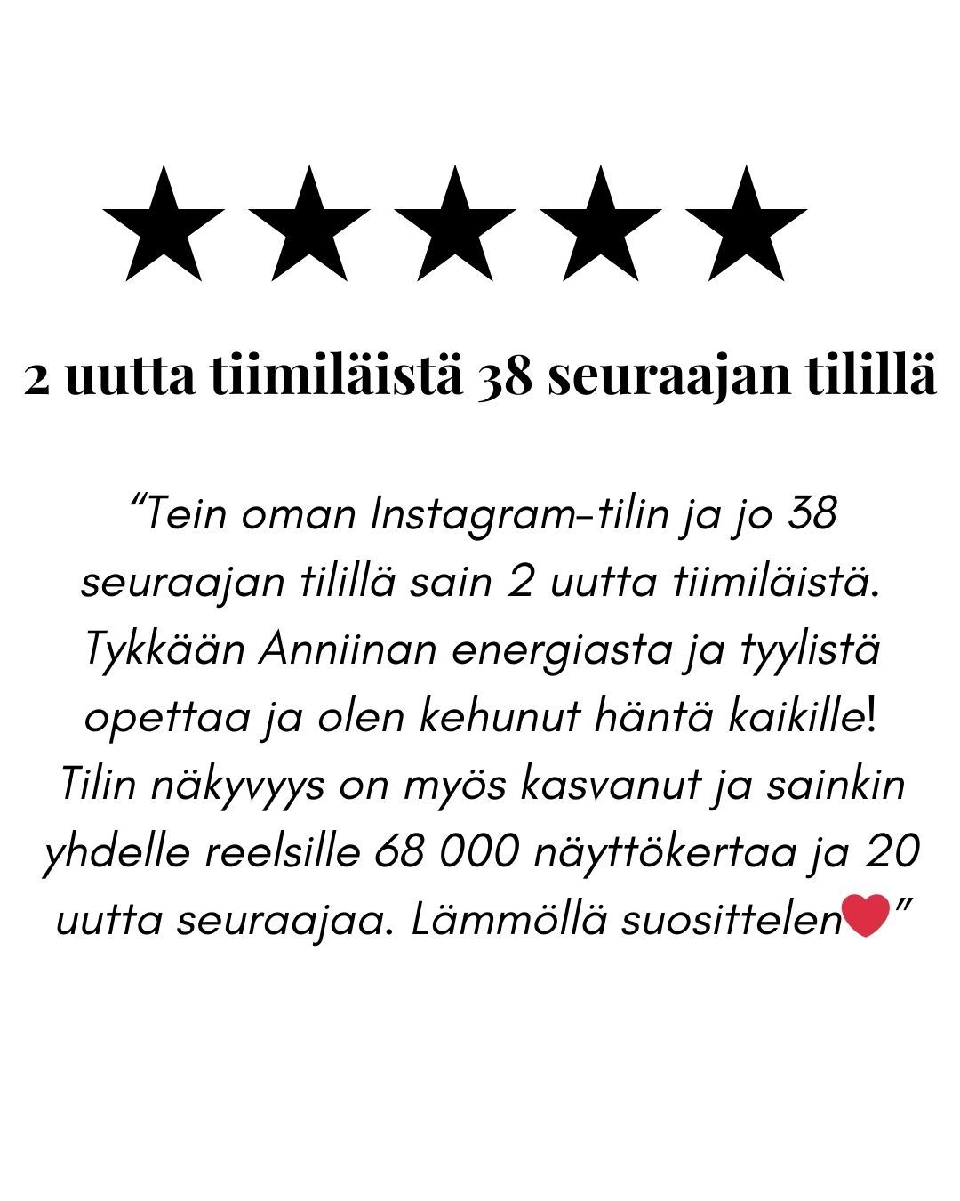 - Opit tekemään tilistäsi todellisen asiakasmagneetin [joka pakottaa uuden tulokkaan painamaan “Seuraa”-nappia ja jää vielä selaamaan sun vanhoja postauksia hurmioituneena]